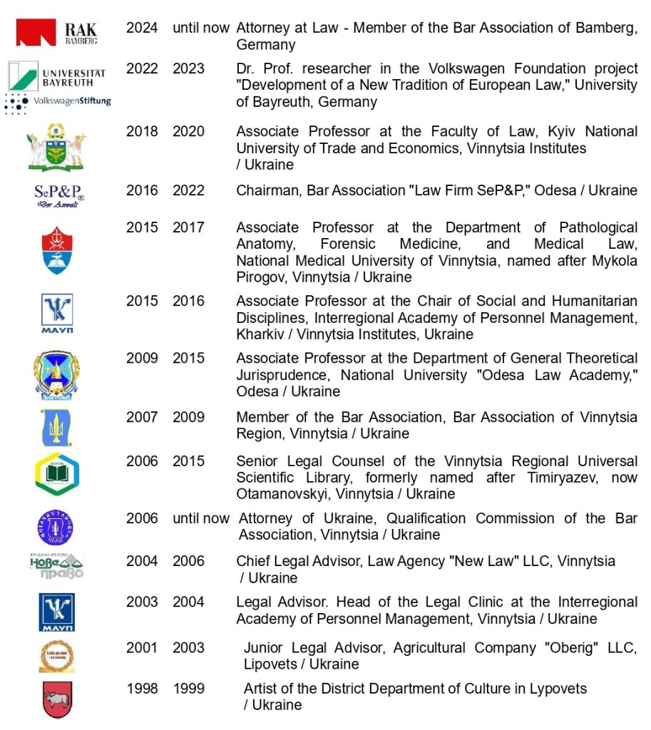 He headed the law firm „SeP&P“ (Odesa) from 2016 to 2022.